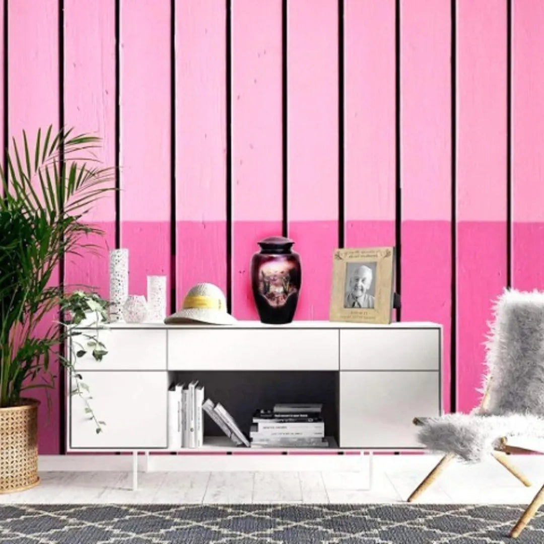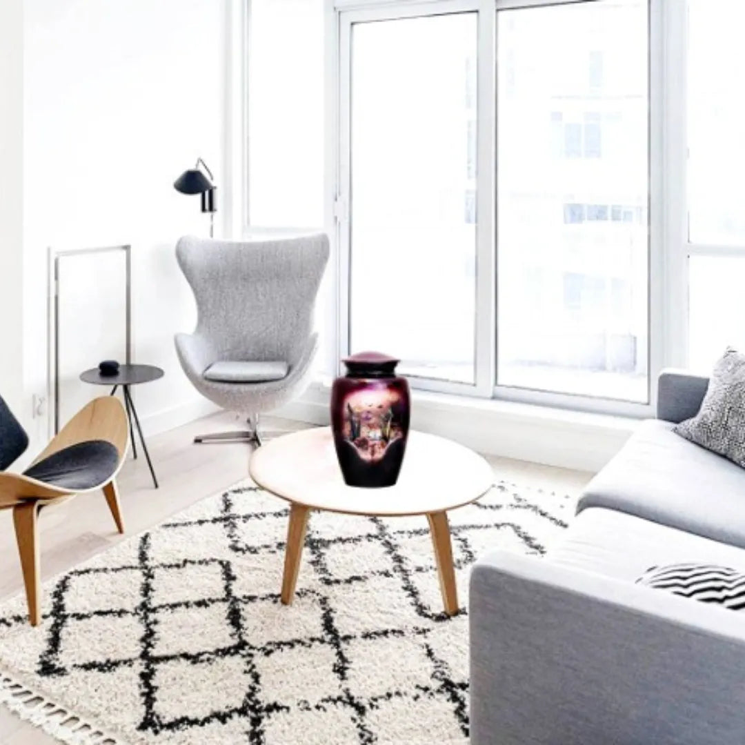 Crafted from durable, high-grade aluminum and finished with a high-gloss surface, this urn offers both beauty and long-term preservation. Its rich imagery provides comfort and serves as a reminder of life’s delicate and powerful transitions. Perfect for home display or ceremonial use, this urn honors your loved one in a way that feels both personal and timeless. A truly remarkable piece among affordable urns for ashes, this design will be a centerpiece of any memorial, providing peace and reflection for years to come.