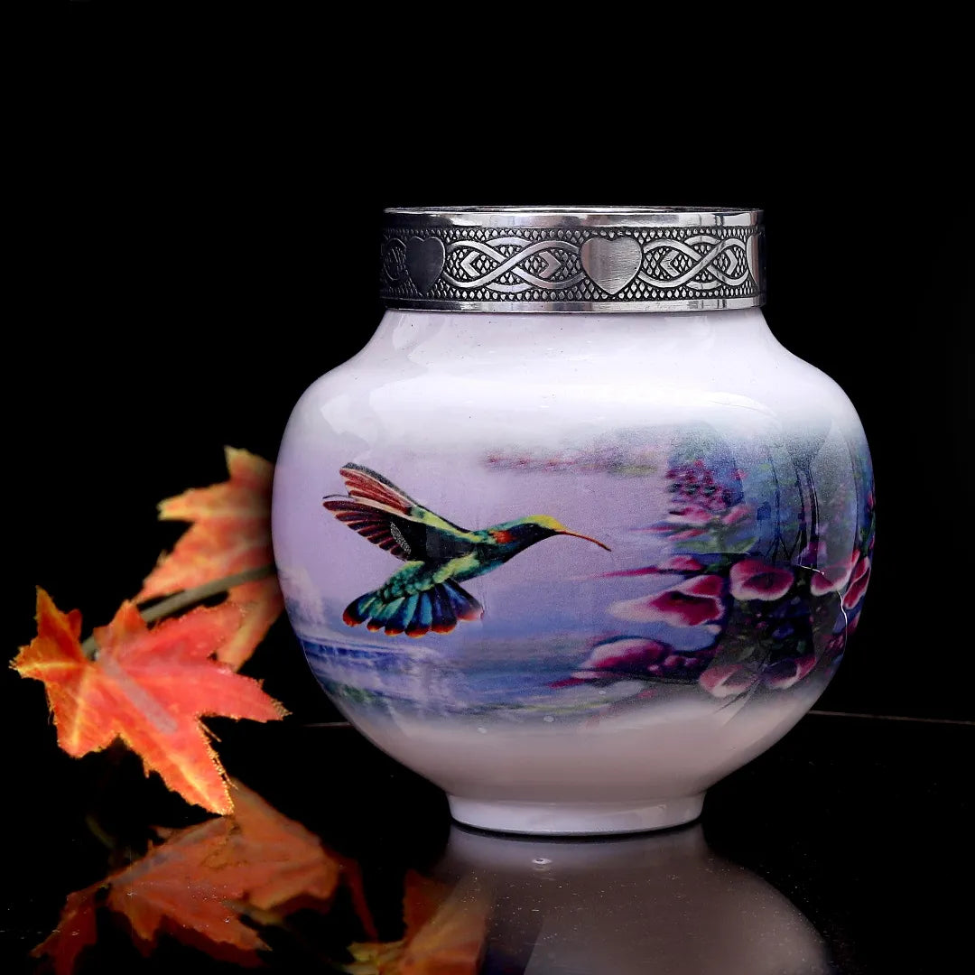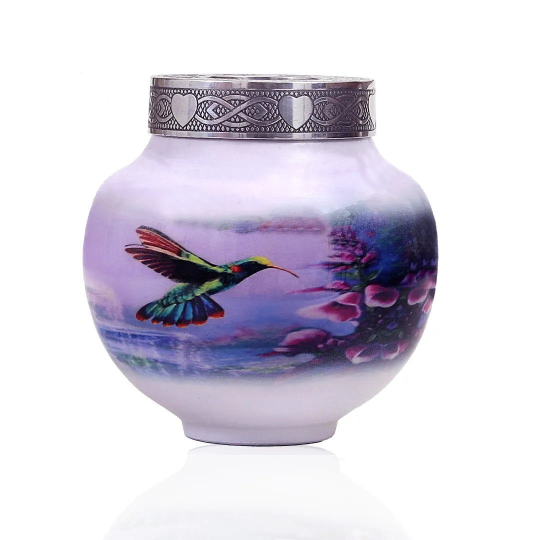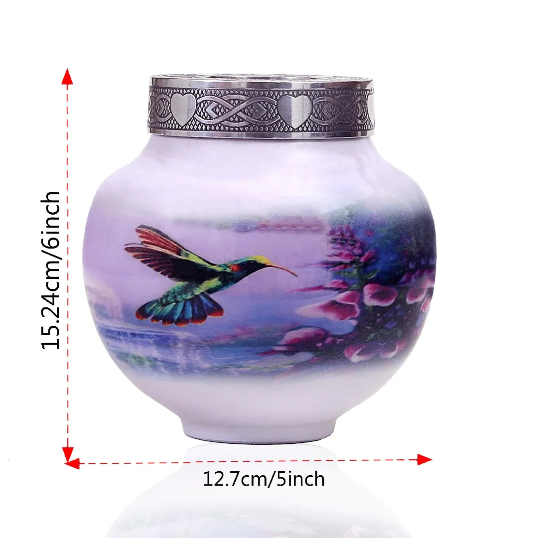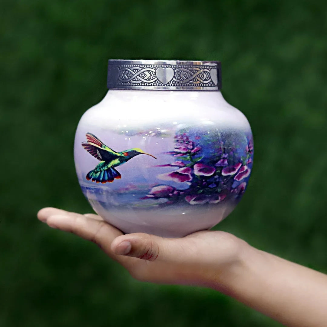 Honor your loved one with this exquisitely handcrafted Hummingbird cremation urn, designed to celebrate life and the beauty of nature. Featuring delicate artwork of a hummingbird in motion, this urn symbolizes grace, resilience, and the enduring spirit of your beloved. The intricate design and radiant finish evoke a sense of peace and remembrance, making it a meaningful tribute to a life well-lived.