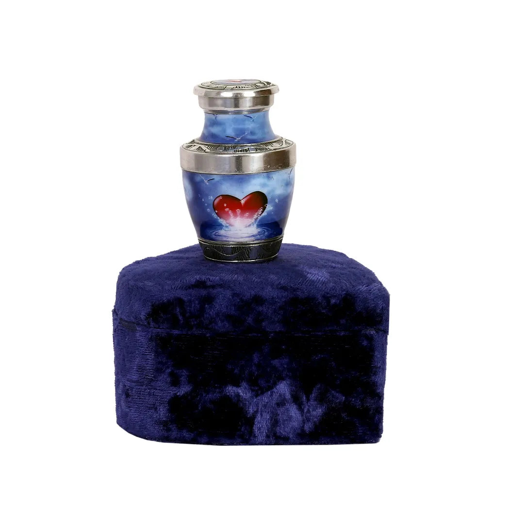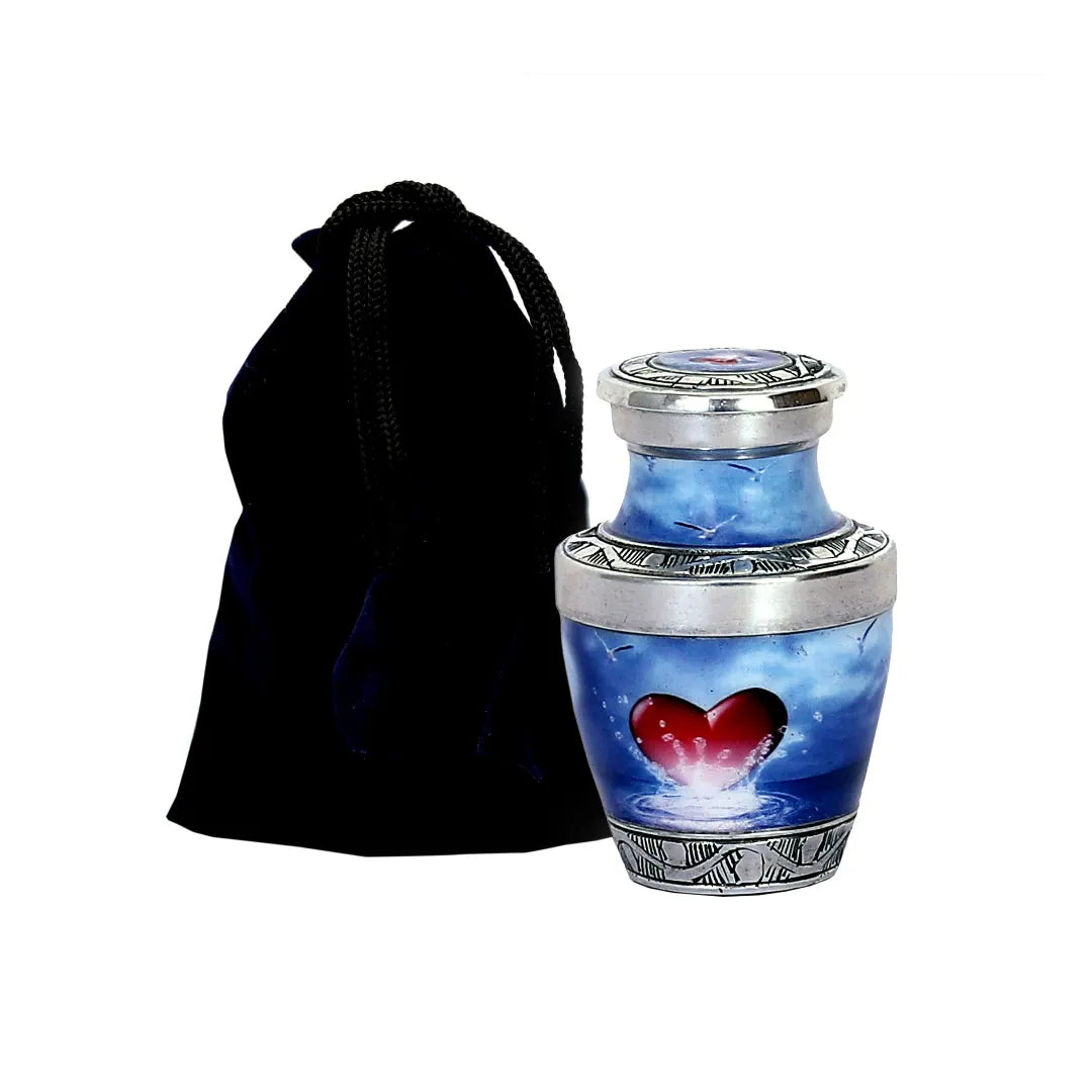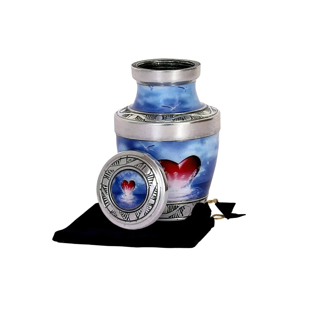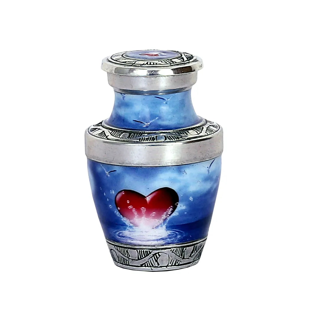 Celebrate your loved one’s memory with our premium cremation urns, thoughtfully crafted to provide dignity, peace, and lasting beauty. This keepsake urn features a striking hand-painted red heart resting over a serene blue water and sky scene, symbolizing eternal love and comfort. Designed for those searching for urns for cremation remains, this small urn offers a meaningful way to keep a portion of ashes close.